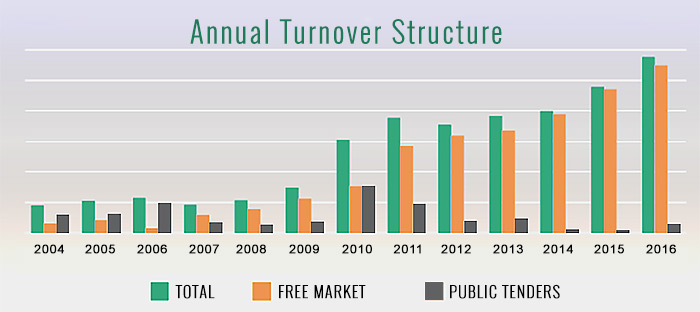 In the recent years, the annual turnover of FUFARMA has increased significantly starting with 50% increase in 2010 compared to 2009 and currently in the last two years an increase of 19.85% in 2015 compared to 2014 and a 20% increase in 2016 compared to 2015.